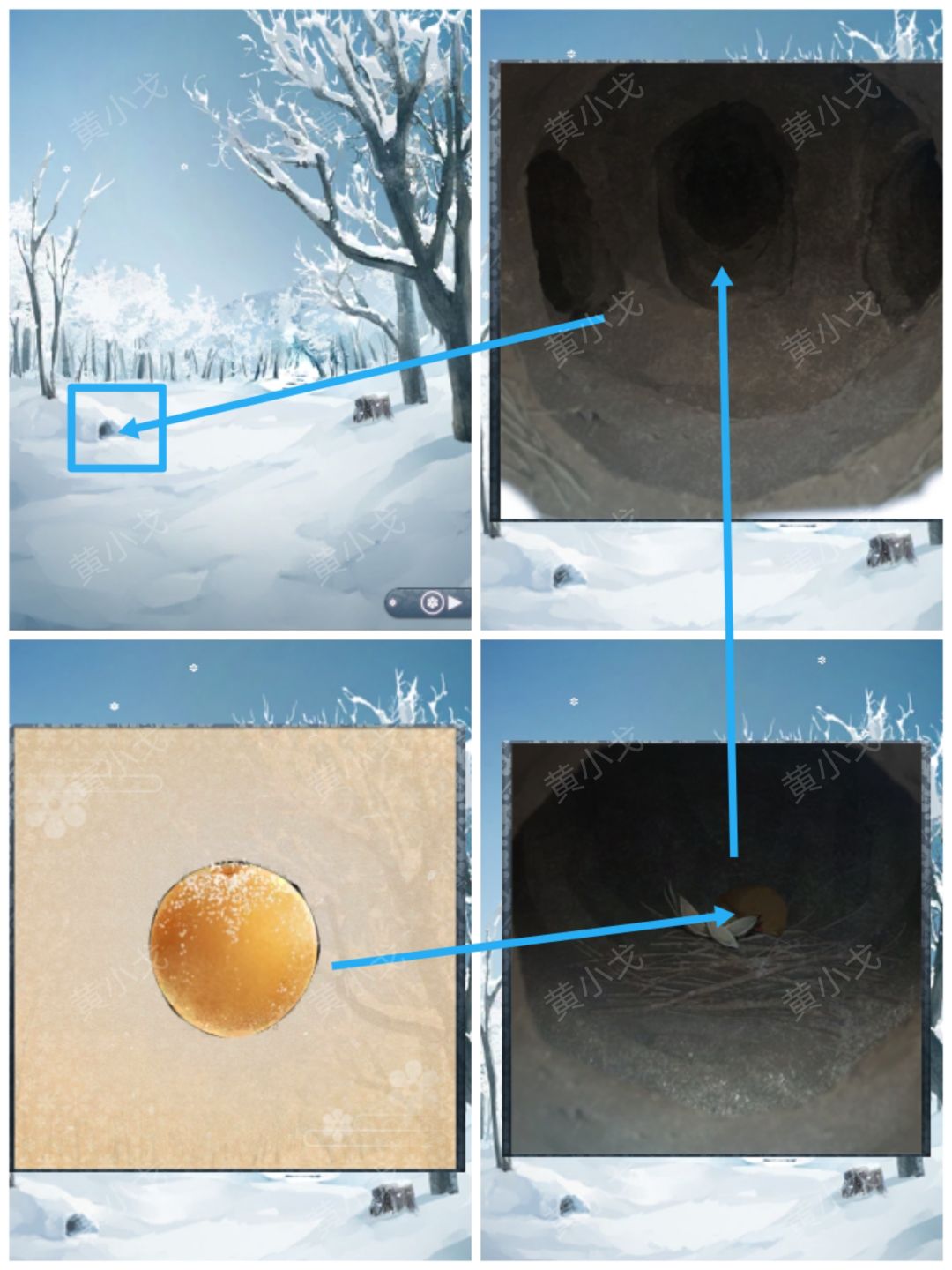 3.点击树旁边被雪埋住的东西,拨开雪,露出祠堂