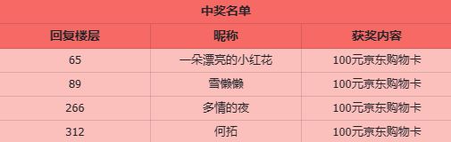 恭喜以上中奖的“卡友”,请中奖卡友于10月17日前回关发帖账号,我们将以私信的形式发放京东卡。