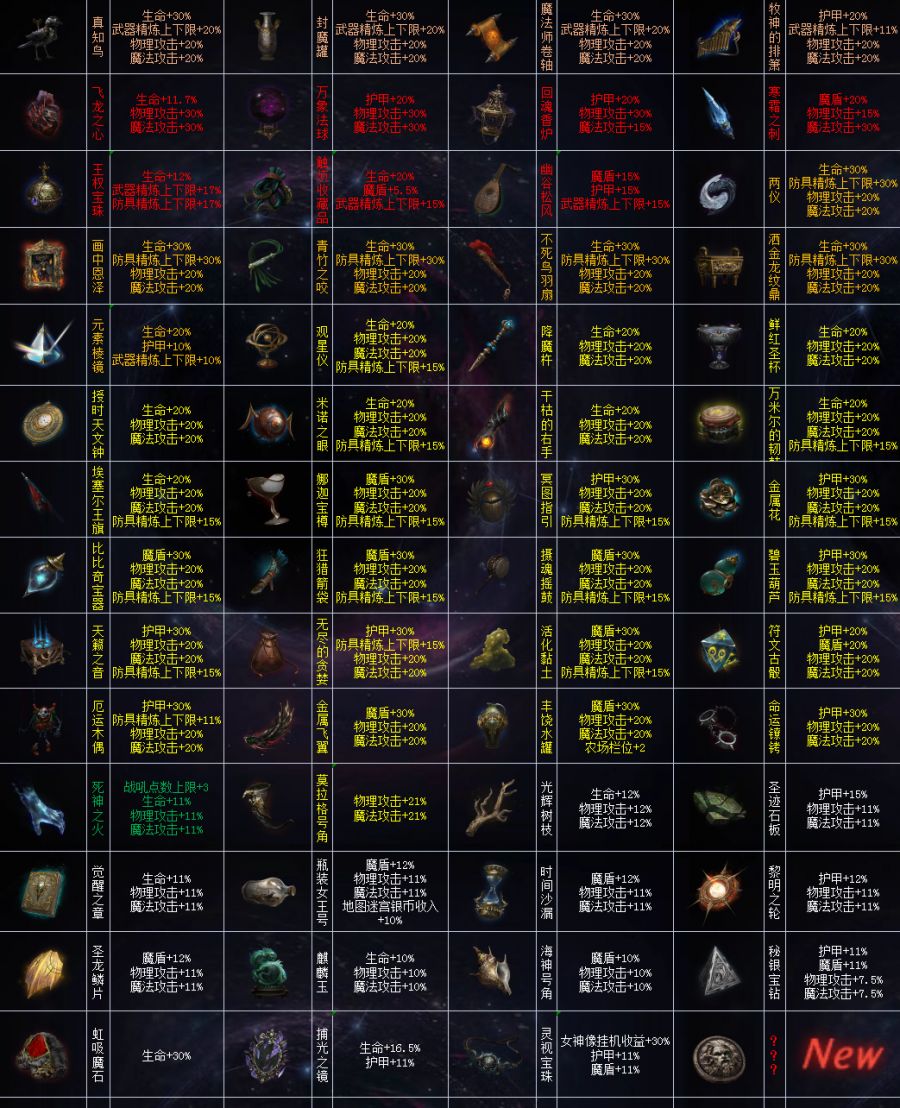 白色:多为任务奖励,象征性升级下即可。其中有一个需要注意的是【莫拉格号角】该圣物居然提供了21%的物魔攻击,安排到73级。