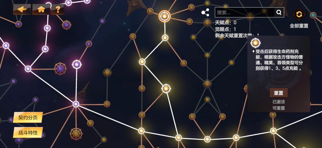 3、可以抠几点天赋去点【流浪药师】的受击回复,受到首领伤害可以获得5点充能,基本上吃到克莉丝几下伤害,血瓶就回满了。不过点这个天赋会经过一个禁用30%血瓶充能的天赋,这里可以带上符石【源泉】来降低这个数值,突出一个安稳
