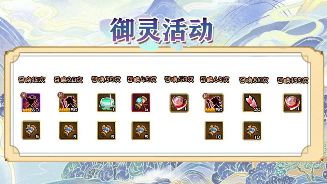 活动期间,御灵召唤达到指定次数可领取丰厚奖励,召唤卷轴也加入了奖励之中。每次御灵召唤都可获得御灵回响,御灵回响可以兑换强力上级英雄和丰富道具奖励。完成本轮所有任务后可重置奖励。(本期御灵回响可兑换英雄【九天玄女】、【后羿】、【鱼玄机】、【陈圆圆】、【卫子夫】、【张春华】、【陈阿娇】、【柳如是】、【公孙离】)