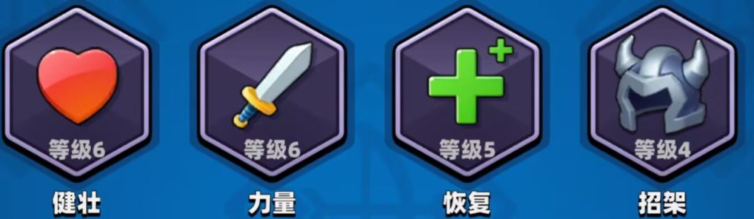鼓舞:提升角色在关卡内升级获得的生命值;