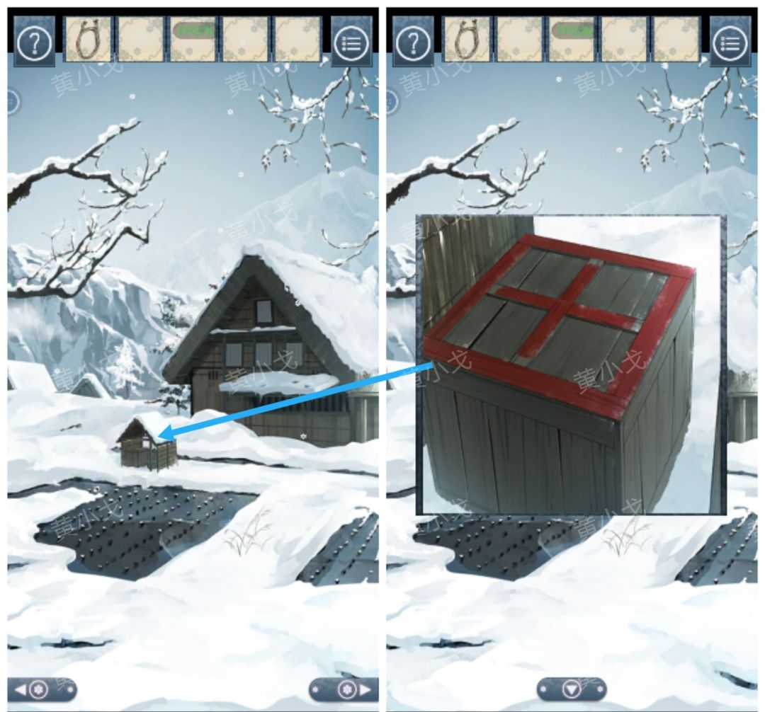 2.(空房子外)点击矮屋檐下的箱子,获得【断掉的扫帚】,注意看地上的涂鸦