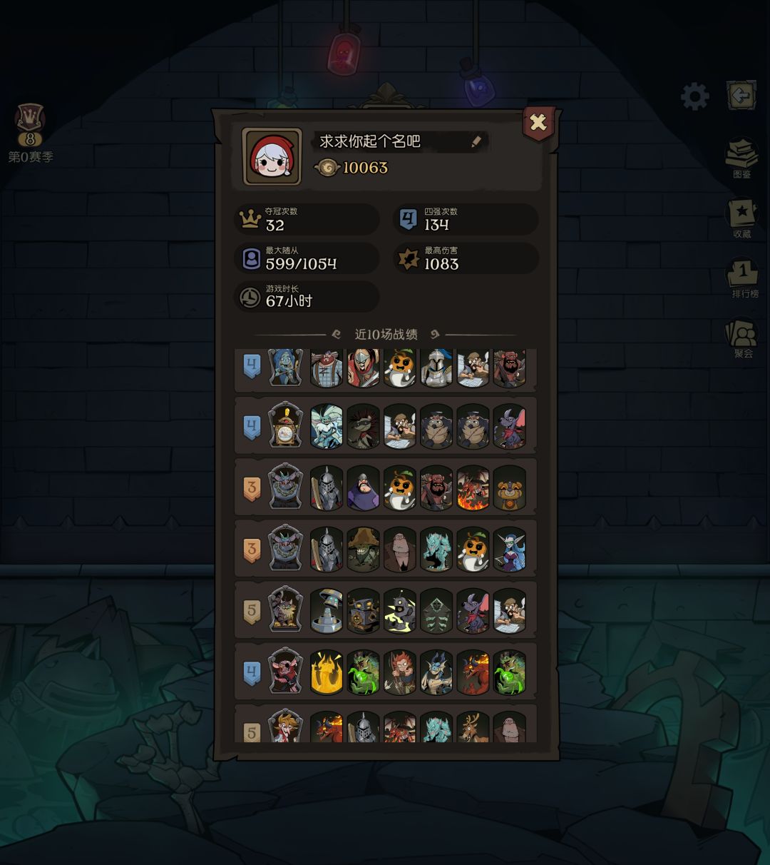 顺带提一嘴,非常需要数据记录功能,特别想知道自己玩了那些英雄胜利如何,阵营胜率如何。炉石有盒子,这大概只能自己做一个了。