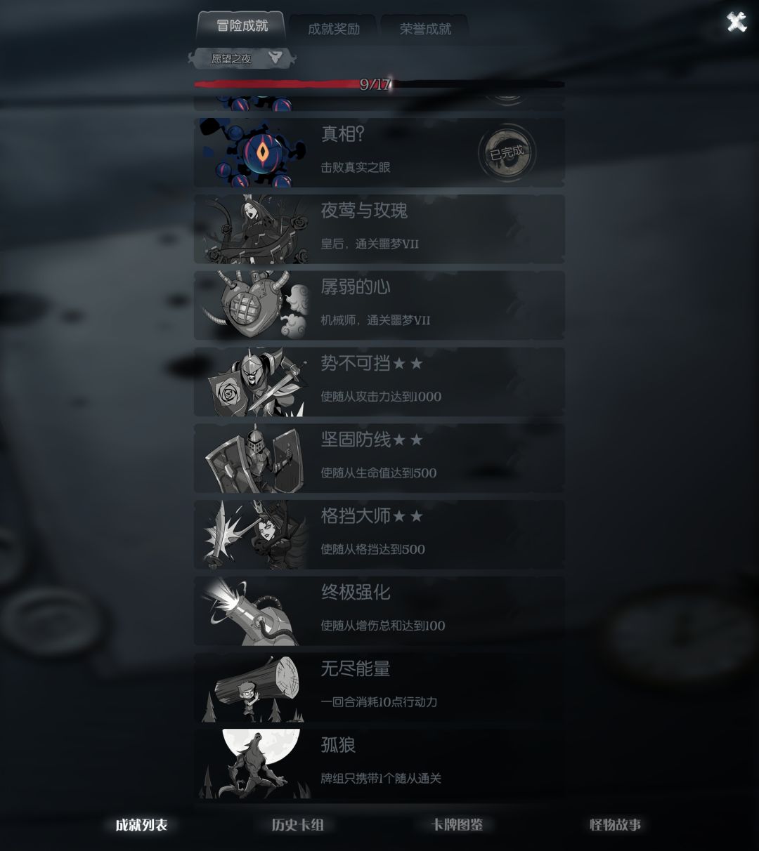 算是游戏刚出就在玩的老玩家了,单机模式里除了愿望之夜出来后年纪实在大了没肝完成就,其他成就全通。