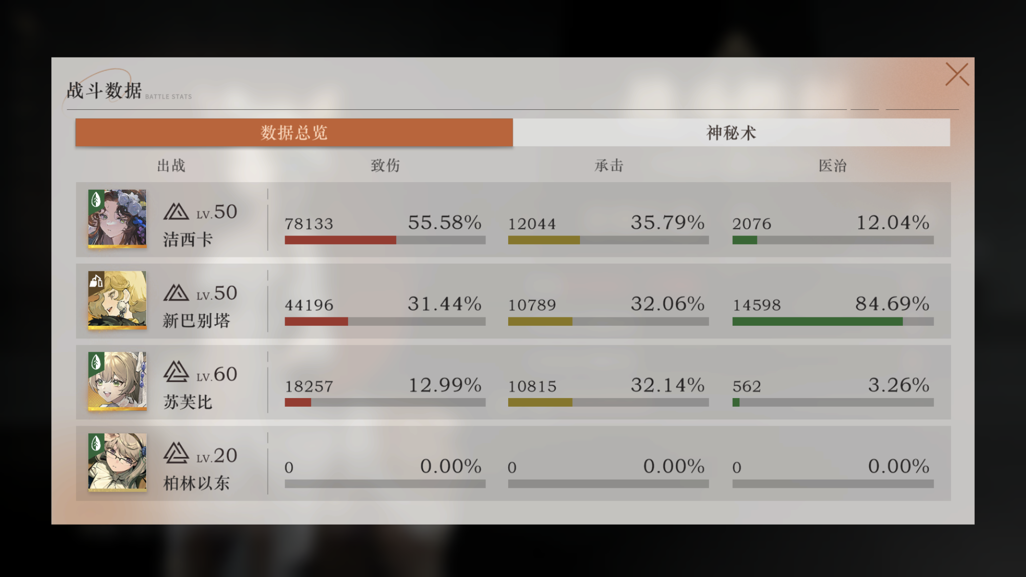 塔姐洞一的buff好像是叠了2层还是3层,而且还是共鸣没叠生存块的情况下(仅免伤6%),在叠满生存块时,可达到19.5%的免伤,348大概能免伤为294,不被克制的情况下受到的伤害几乎是同练度主C的50%以下,就是说,等主C死了,她还有一半以上的血,硬是真的硬啊...