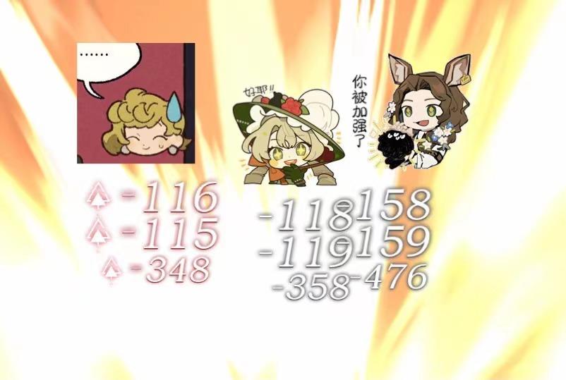 输出牌数量差不多的情况下,输出达到了无夜色削弱版·鹿姐的一半,勉强合格吧