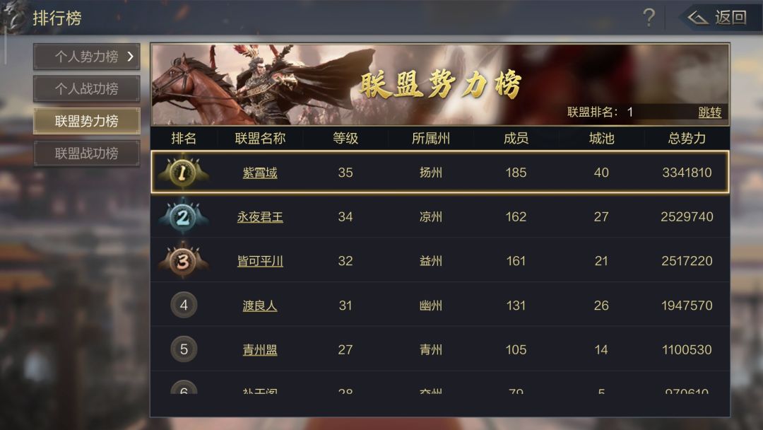 由此,我们提前验证了本盟真正具备破关进资源州的能力,此后,本区其他三个大盟也于次日相继攻取了州内的一座7级城,从此奠定了区内四强格局(扬州,凉州,益州,幽州)。