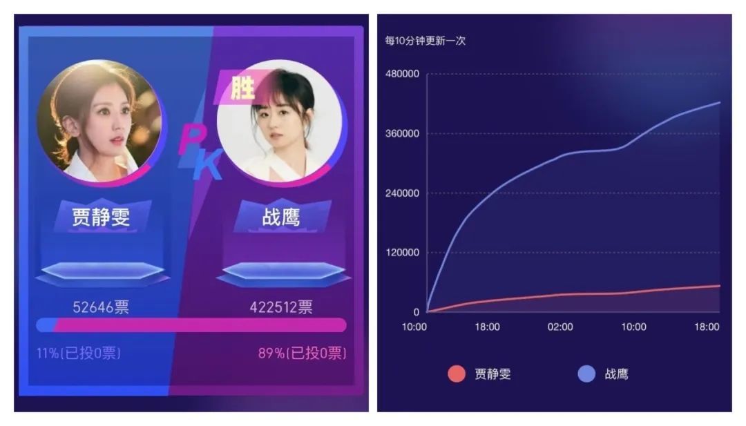就像有老哥说的:“你投给明星,明星没有啥反应,你投给战鹰,你能在直播间里看她发癫”,抛开乐子人心态,这或许可以解释为什么有人给战鹰投票吧。
