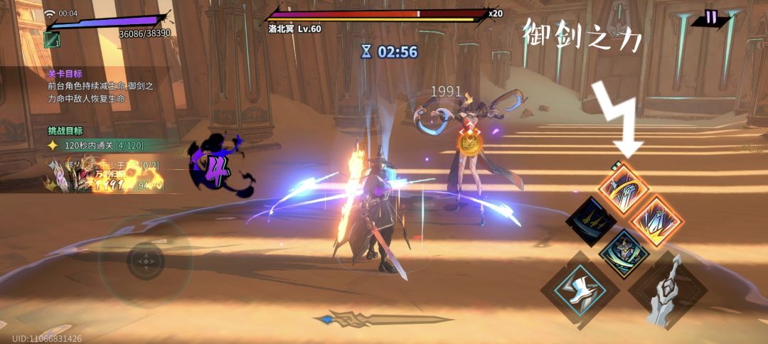 打这关的时候主角技和武灵技交替使用,主角技→武灵技→主角技→武灵技,武灵技从万剑归宗开始一轮放完有5次主角技,真空期平砍几刀万剑归宗的cd差不多也快好了,中间记得放个奥义做三星任务