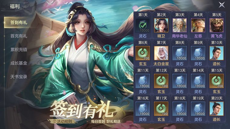 各位宗主每日仅需登录游戏,即可获得五星神将精卫、纣王、太白金星,五星材料-道长以及大量四星神将、玄玉和灵石!
