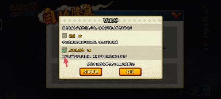 更新完火影觉得内存太大的话,不需要删除游戏,根据下图所示进行删除历史文件就可以。
