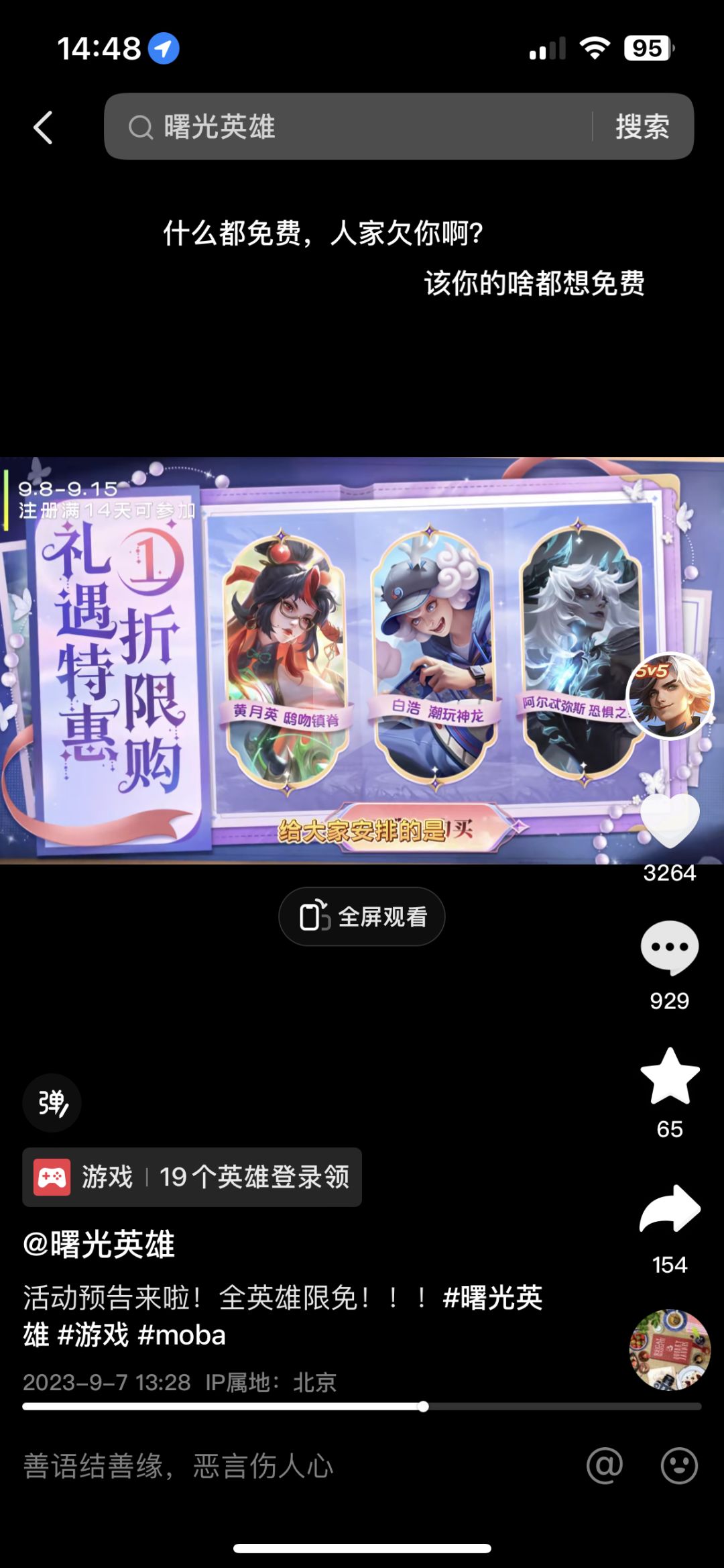 ①9.8-9.11号全英雄限免(包括西王母北斗)