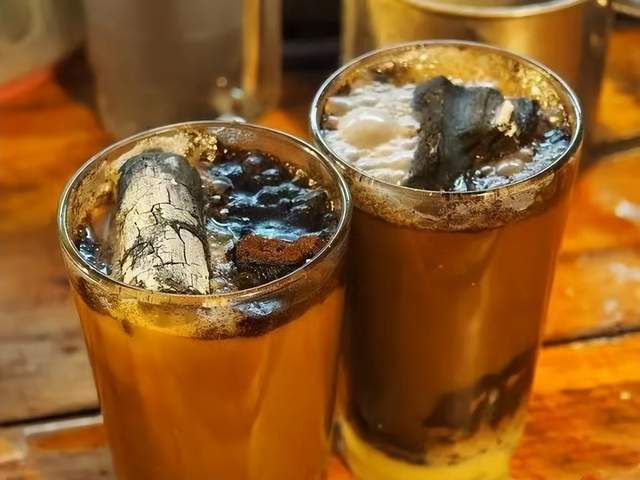 炭烧咖啡的诞生,其实是一位咖啡店老板为了治疗肚子痛而自创出来的“偏方”。他在热咖啡里加入砂糖后,直接把一块烧得通红的炭块丢进咖啡里,由此产生了一股独特的炭香味。