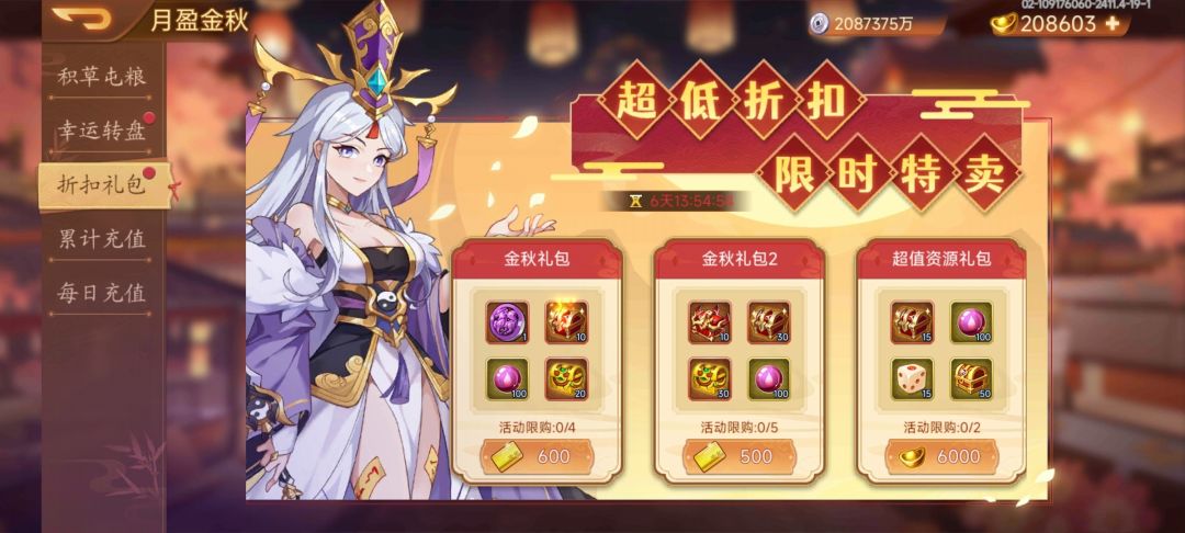 正值秋收季节,曹操有令,需主公您在活动期间,用固定的官银购买粮食,扩充粮仓,以备军队开支;