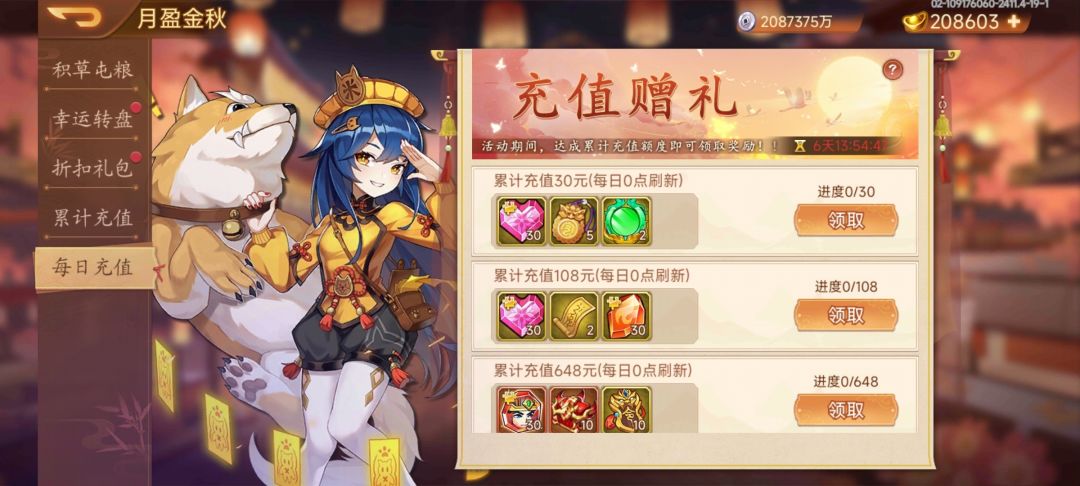 活动内容:活动期间,累计充值达到目标值即可领取奖励!