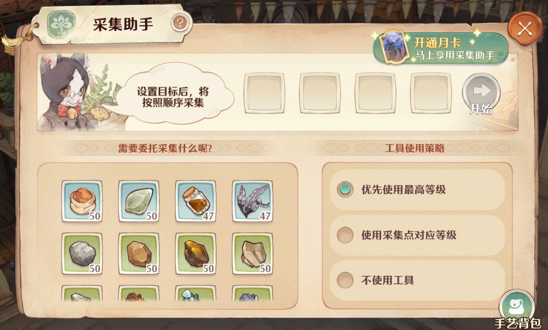 ⑤购买月卡后会解锁采集助手功能(最多可一次性安排4种材料的自动采集计划!),勇者可以在闲暇时,安排好自动采集计划,直接解放双手!(适度消费,可别贪多哦~)