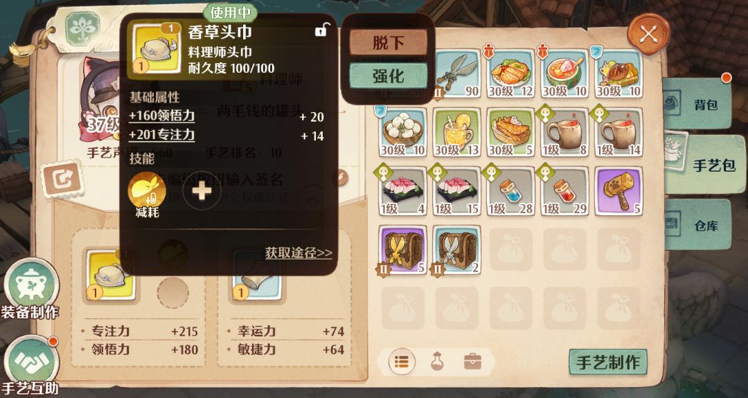 (2)每天锻造手艺装备,烹饪采集都提效: