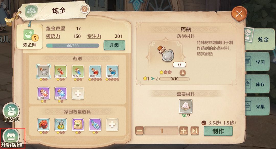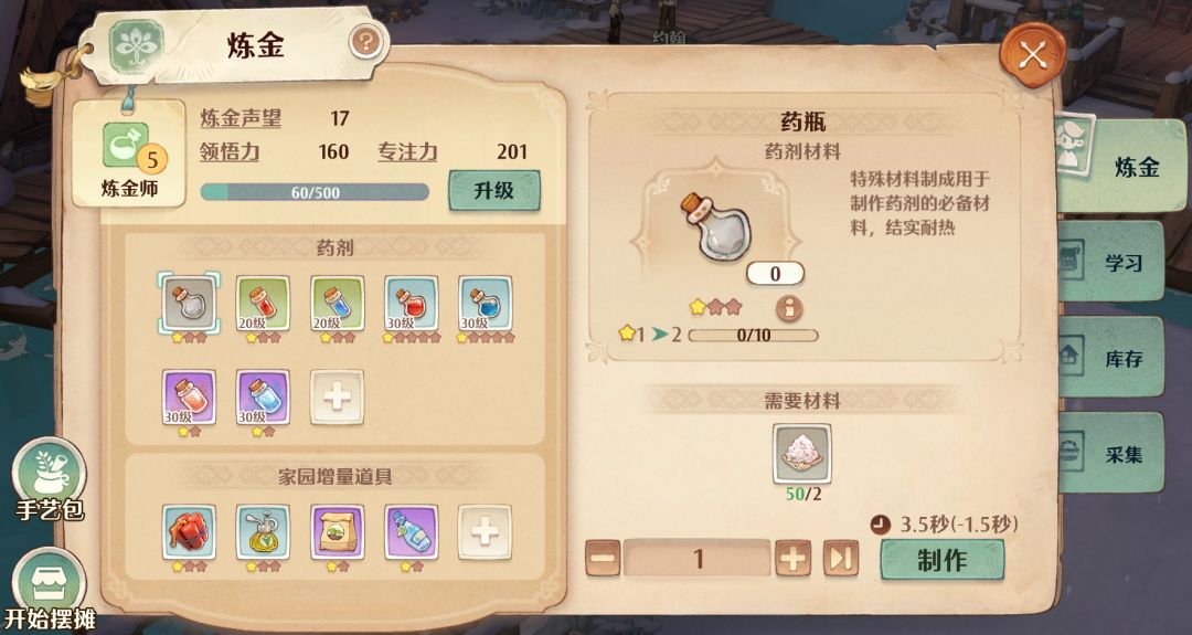 ①炼金师需要多次炼制产物提升手艺等级,并解锁新的产物配方;