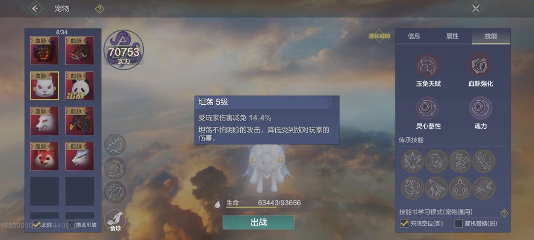 那么为什么要给血脉宠物打技能书,血脉宠物又不出战。血脉宠物的战力是根据血脉宠转化率(宠物的转化率不同,异兽,进化宠,神兽)直接加成到人物面板上的,转化率越高,加得越多。宠物的100点攻击,假如5%的转化率就加成人物5点攻击。同理,宠物的其他属性,吞噬的变异攻击,穿透也会转化给人物加成。这就提到了宠物的培养,下期再细嗦![[表情_微笑]](https://img-tc.tapimg.com/market/images/0f170d4b1ecf80c267e5a44b5992a199.png)