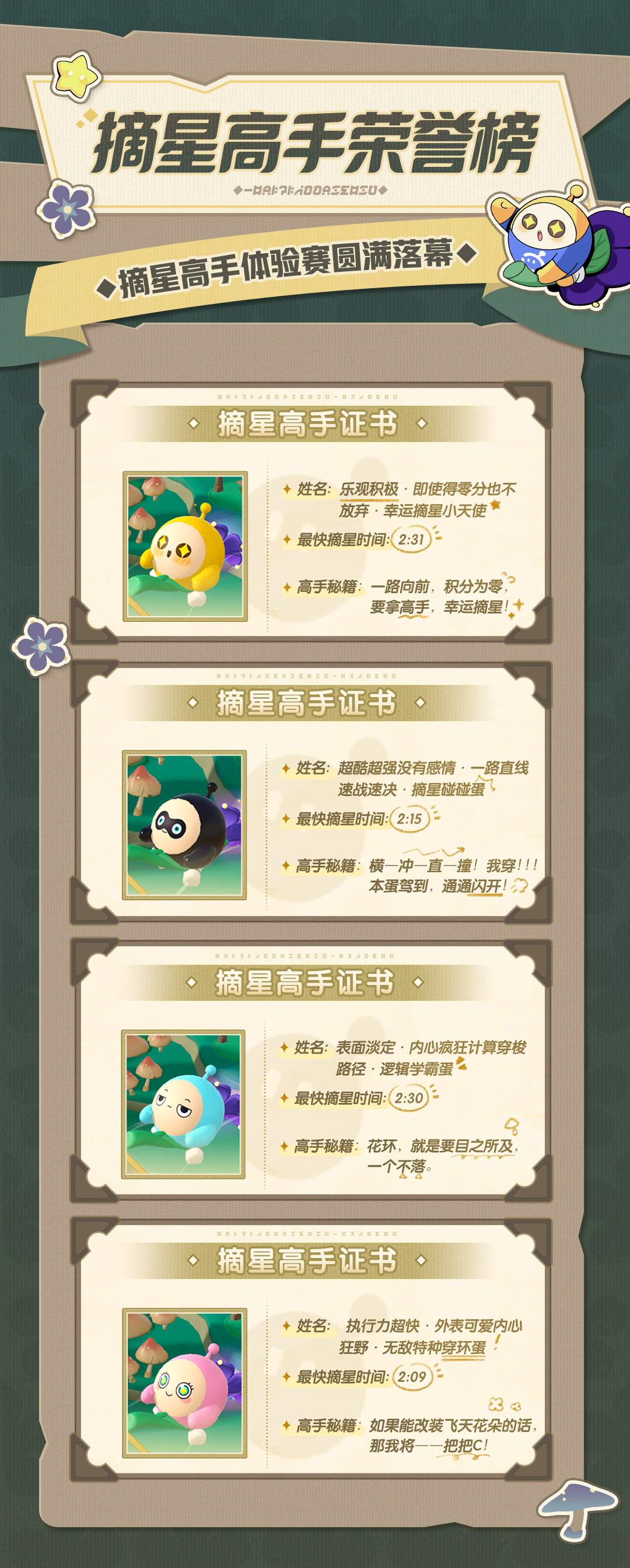四小只因不俗的表现成功荣获“摘星高手证书”