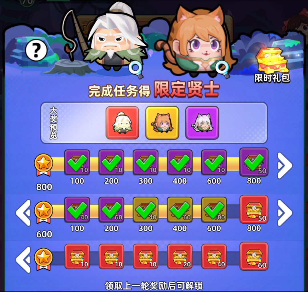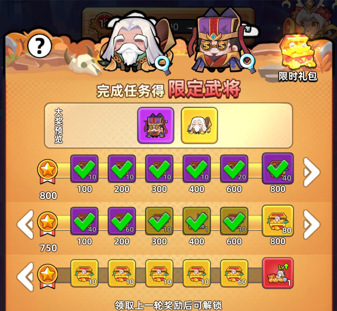 任务大概都是这样了,3轮奖励共2400分,想拿满奖励所有任务只能有1个不做,我这里是算够晚上可以拿满两轮,不过提前做了攻略了。800分鲁肃,1000分1星鲁肃,1200分2星鲁肃,1600分司马微,2200分1星司马微,2400分2星司马微。