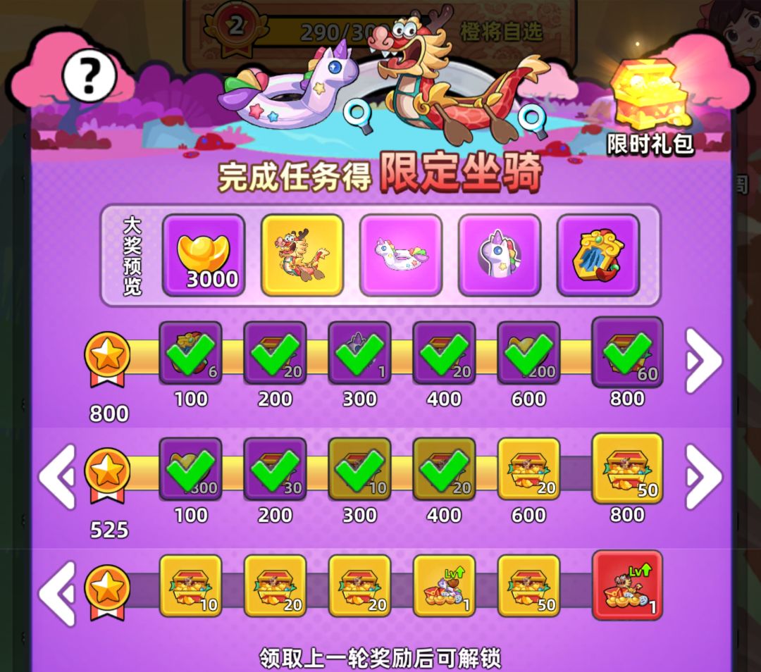 这次同样是2400分拿满奖励,我因为不抽天工套所以没做消费元宝的任务,差龙舟差得有点多就懒得弄了。这次满分是2425分,同样想拿满分只能有一个任务不完成。
