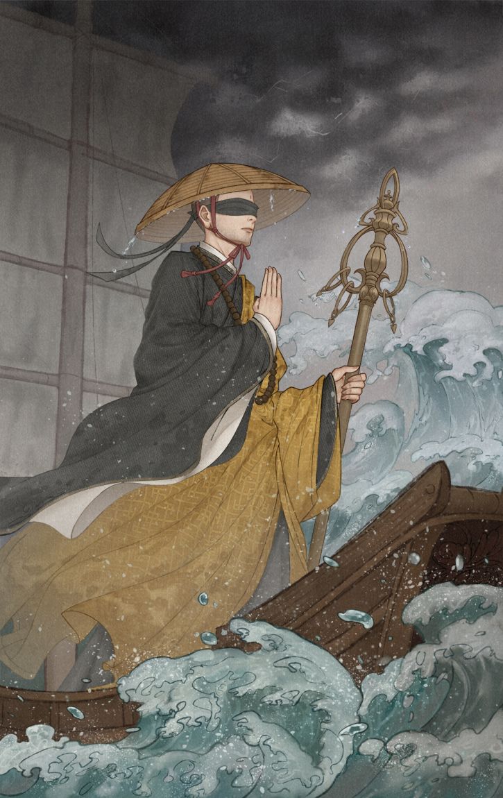 高僧鉴真律宗南山宗传人,著名医学家,曾任扬州大明寺主持,他不畏艰险,东渡日本,讲授佛学理论,传播博大精深的中国文化,促进了日本佛学、医学、建筑和雕塑水平的提高,受到中日人民和佛学界的尊敬。