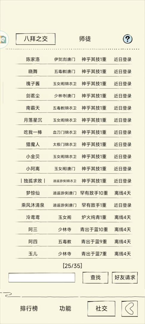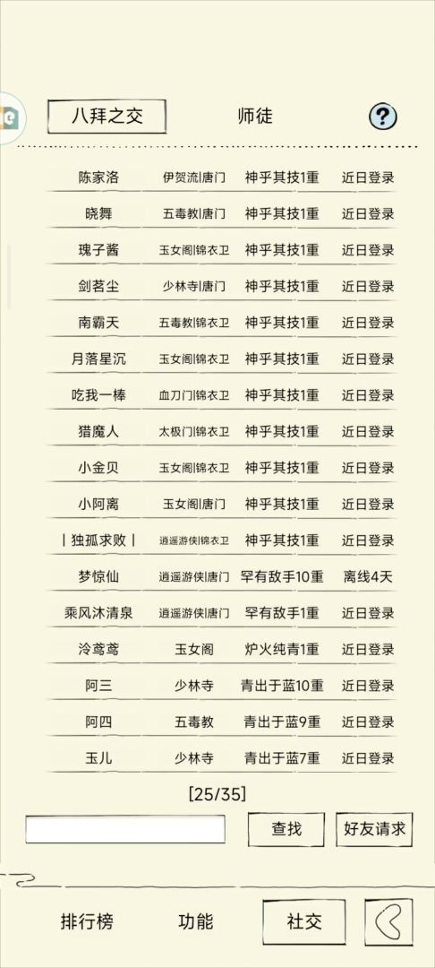 这套专杀没什么恢复能力的脆皮武学,由于六回合才能打两下,伤害方面很吃紧。普攻那一下会被识破,好在是识破会被罗汉被动减一部分又有金身加持根本不怎么疼,而且要是能骗出破兵就更好了,这样八门期间对面只能干瞪眼。这里只推荐四轮之后玩,非常考验内力和防御力,一旦形成循环对面基本无解。弱点就是怕高回复九阳,怕寒玉减内耗(两回合回不够500),双近战攻击怕大蛤蟆(小蛤蟆由于罗汉的存在也不是很怕),怕北冥被动吸内打断我们循环,还怕五毒暗器减回复。好在是化境的以上武学特别少。