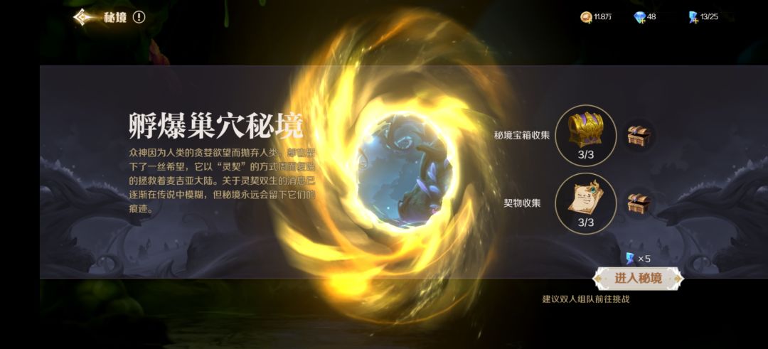 孵爆巢穴秘境中共有3个宝箱和3个契物。