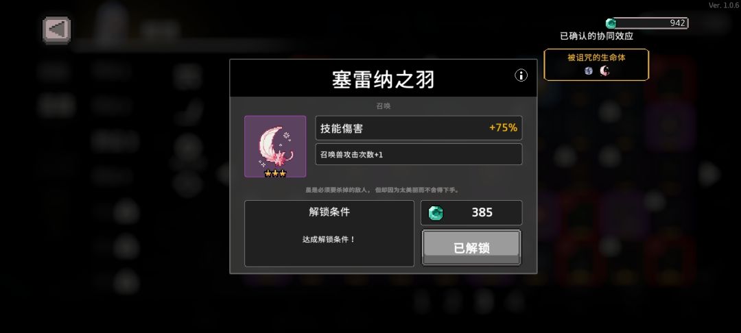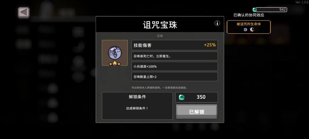 ps:被诅咒的生命体这个协同是个垃圾,打小怪不要组合,打boss也没用,这里会用到一个bug,下面会有仔细讲解