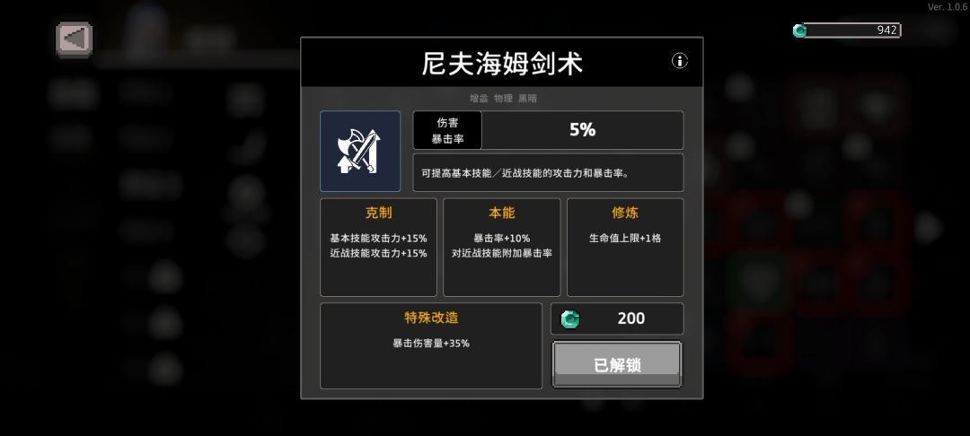 尼夫海姆剑术,可让无人机增加一个黑暗协同,同时增加了15%的暴击率和35%的爆伤