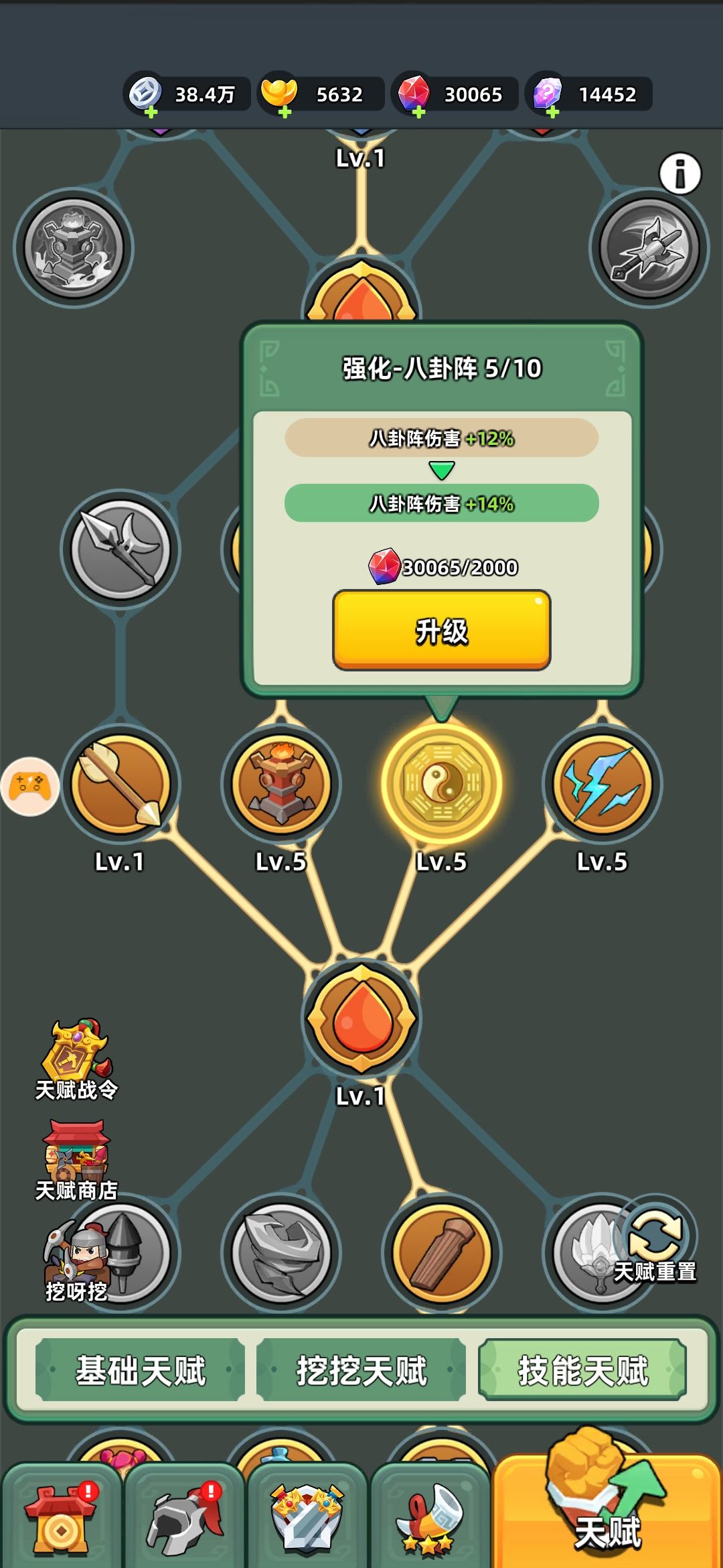 章节推进后会解锁新技能,如火符、火塔、雷电、骰子、蹴鞠、穿云箭等,这时候技能搭配改一下,主动:武器技+火符+火塔+蹴鞠+八卦+骰子/雷电,被动:太平要术+聚宝盆+手臂+疾风靴+人参+乾坤袋。火符能消除清理蝙蝠乌龟留下的毒液,主动必选;人参、疾风靴、乾坤袋也是基本必选的被动技能,人参加血,疾风靴加速,乾坤袋加拾取范围。
