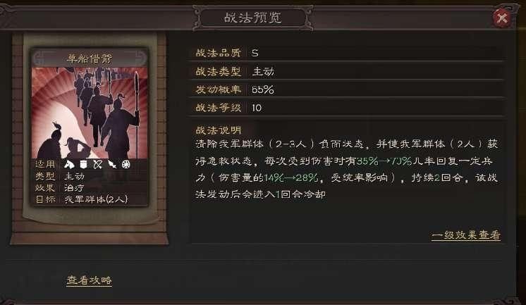 加点时需要考虑比张角智力低些,这样暂避的伤害降低可以加持到张角身上。另外暂避也会为太史慈提供了更多的续航。副将2:太史慈太史慈带了“当锋”、“兵无”,全智力加点,可以让太史慈有较强的续航和输出。基本能打出场均1.5万的输出。