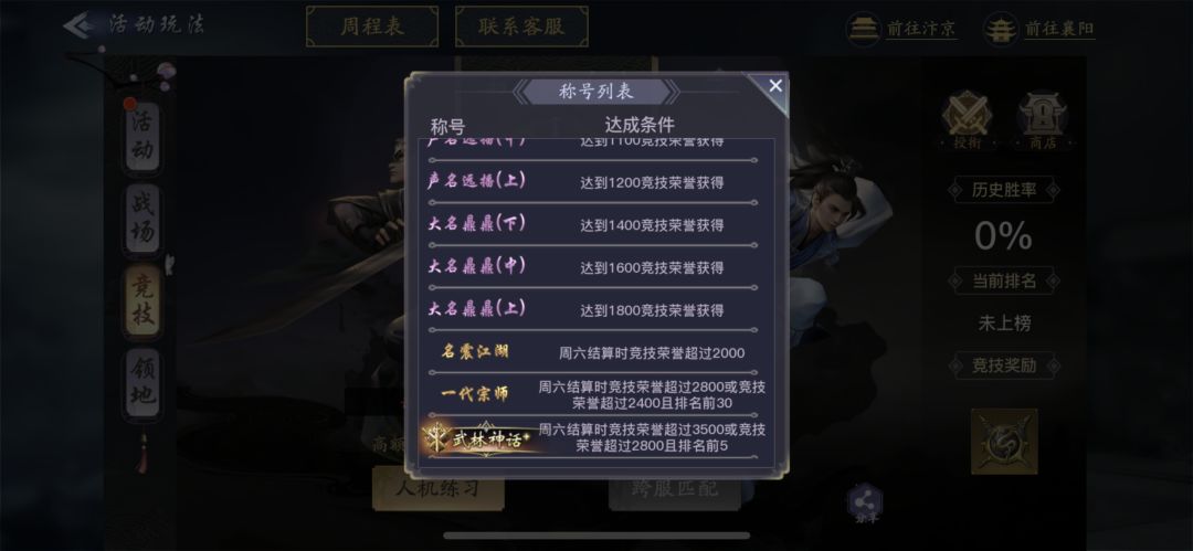 既然是竞技对抗,那么获胜的一方肯定会有各种奖励,竞技玩法的奖励一共有两个:竞技荣誉和武斗积分。其中,竞技荣誉可以用于提升竞技称号。