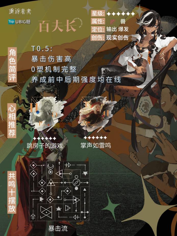⑦百夫长:养成前中后期强度均在线;无需借助外力,靠自身激情即可力大飞砖;本期深眠上下均可用。