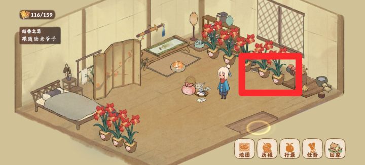 茅草屋之前一直是破破烂烂的,只有在金钗和剑穗都完成了之后,又解锁了一个小光团(任务纳猫礼),但是在纳猫礼任务的中途是没有办法找到的,只有这个任务完成了以后再回到这个屋里看,才有这个萝卜。
