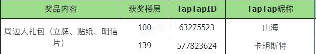 恭喜以下小伙伴获得【苏半夏/梦野瞳(随机)亚克力立牌×1+表情包贴纸×1包 + 明信片套组×1套】大礼包1份~请于2023年9月27日23:59前加入《不存在的谎言》官方1群519900748,联系官方客服3007958023私信用于核实身份的TapTap个人页面哦~