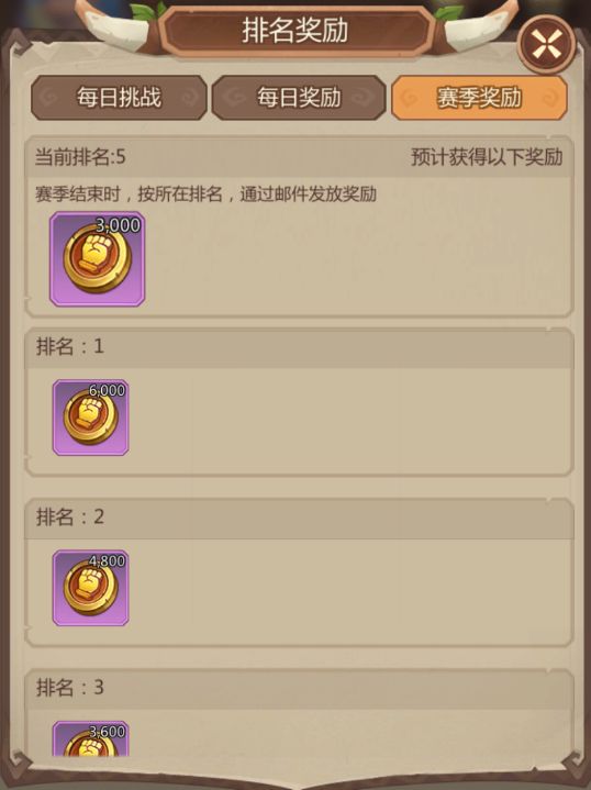 排名奖励中除了每日排名,还有赛季排名结算奖励。