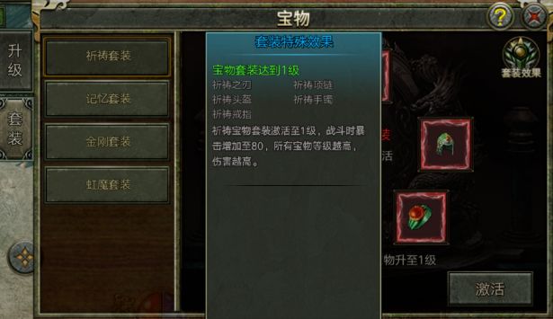 5、宝物套装激活后,可以为玩家带来套装效果,套装等级越高,效果越好