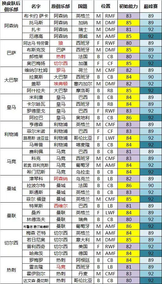 目前这3个主队是最多人玩的,也是这个游戏的大势所趋,这3个主队每个位置的球员评分或者战力相比其他队较高,玩起来会比其他主队较为轻松。