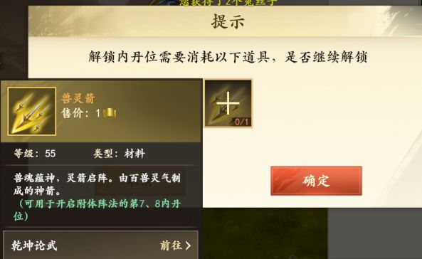 期初默认开启六个孔位后两个孔位需要通关乾坤论武获得兽灵箭解锁。