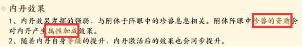 内丹效果受附体珍兽的资质影响。