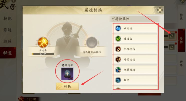 秘笈参悟属性分为两大类一类是偏攻击属性,另一类则是防御属性。每个类别各12本秘笈