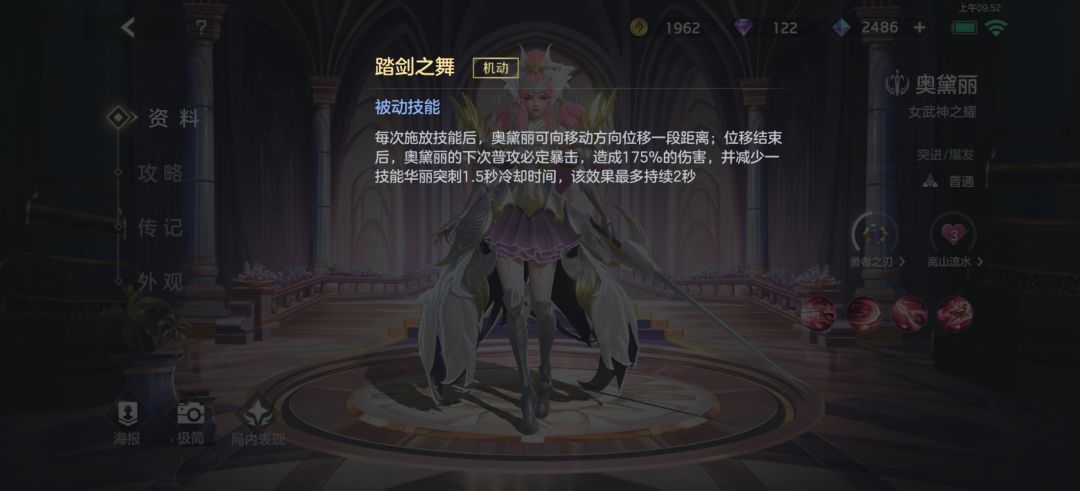 奥黛丽的被动,简单来说就是放1下技能跳1下,下一次普攻附带暴击,并减少1技能冷却。摇杆控制跳的方向,可以当做小段的位移,适合追敌、逃跑、躲避敌人指向性技能、过小墙(比如蓝BUFF的墙)