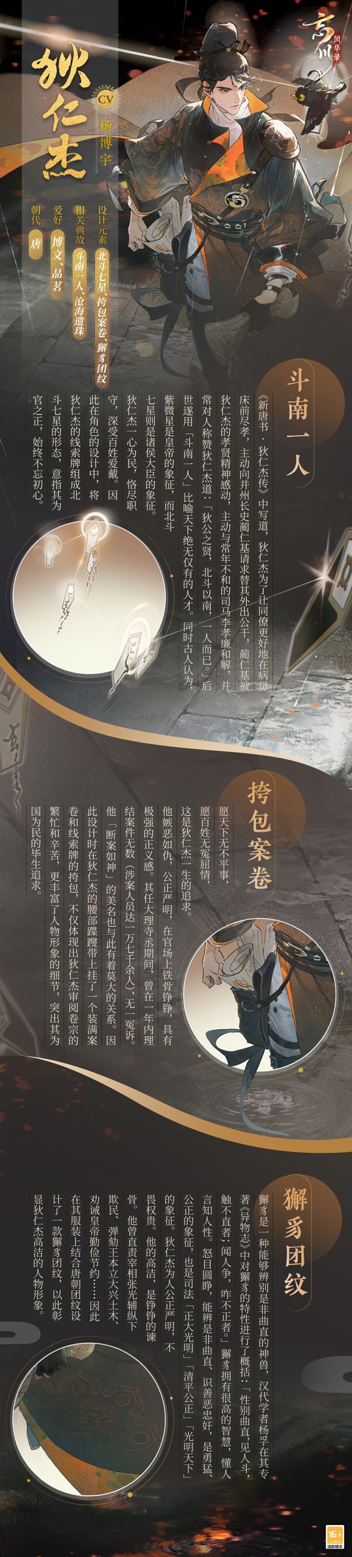 来到忘川后,狄仁杰的样貌逐渐蜕变,仍是最初那个挑灯如昼彻宵苦读,发宏愿要洗净世间冤屈的少年。