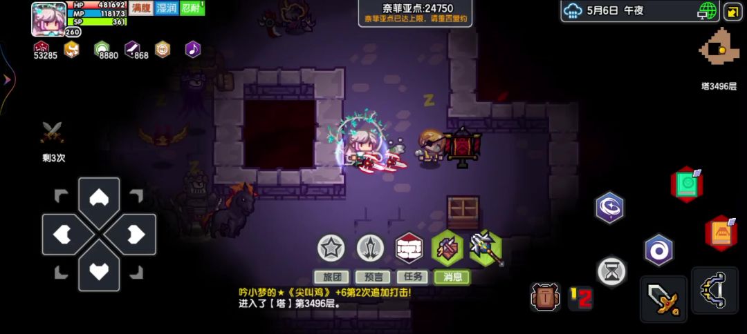 一个月前,我仅仅只能用地狱在1699挂机,想上2399还得靠吞吞叠血,所以一直在1699摆烂,记得后来出了天堂之息,配合毛笔用地狱用地狱在2399还会偶尔暴毙,直到出了秘宝星河密卷,当时拿了一个升到三级就可以稳挂2399,后面感觉用深吞也能挂,但应该也会经常暴毙,所以直到昨天还在2399摆烂。今天买了第二个升到了六级,刚好想看看能提升多少,难度开到专家,然后100层100层的加,发现基本没有压力,再开到大师,一直到3100层用地狱都很稳,试了一轮3499,就开始出现暴毙了,但已经可以了,没想到600多下四就能挂3499,感觉后面升到七级会更稳,对于平民来说星河真的算是神器了