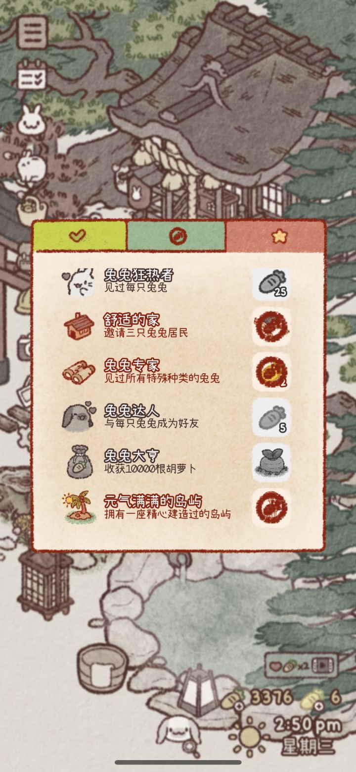 其他所有兔子全部最高好感礼物在地上,全部成就除和所有兔兔成为好友以外全部达成,:大麦