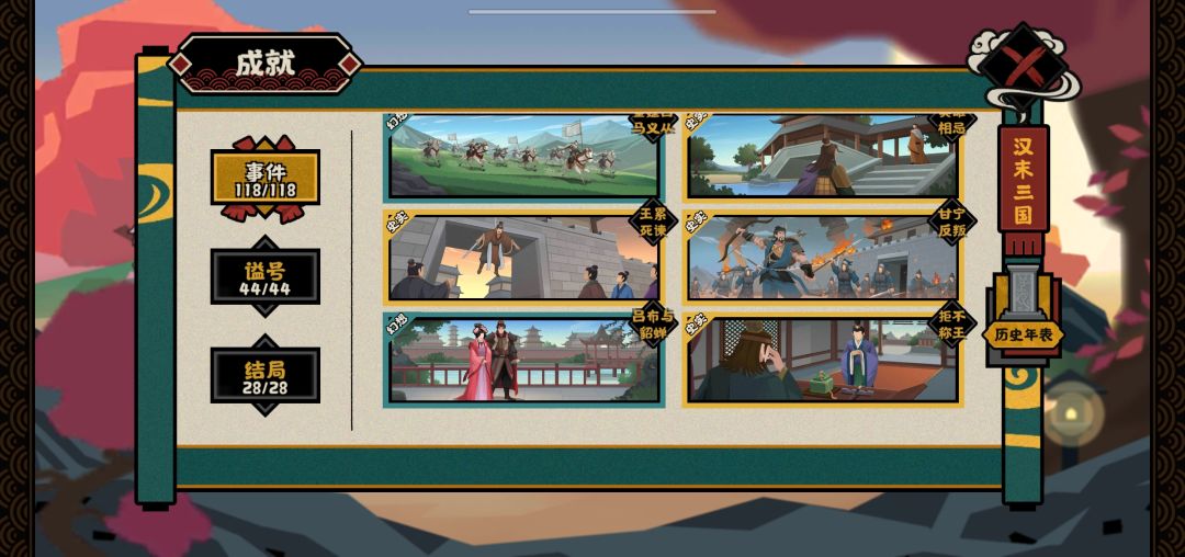 【覆巢之下】:在汉末三国中,使用孔融,触发史实结局后达成