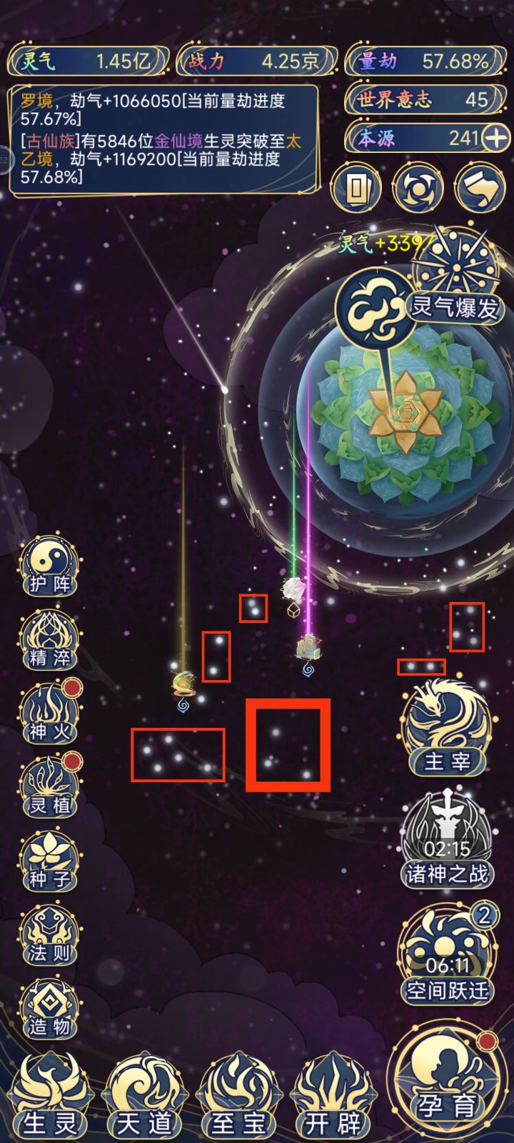 灵气其实是这些小光点,而不是无缘无故的增长,我还纳闷为什么灵气增长时快时慢,久了就不长了,原来是这些小点,跃迁后才有很多灵气拿,拿完就没了😢